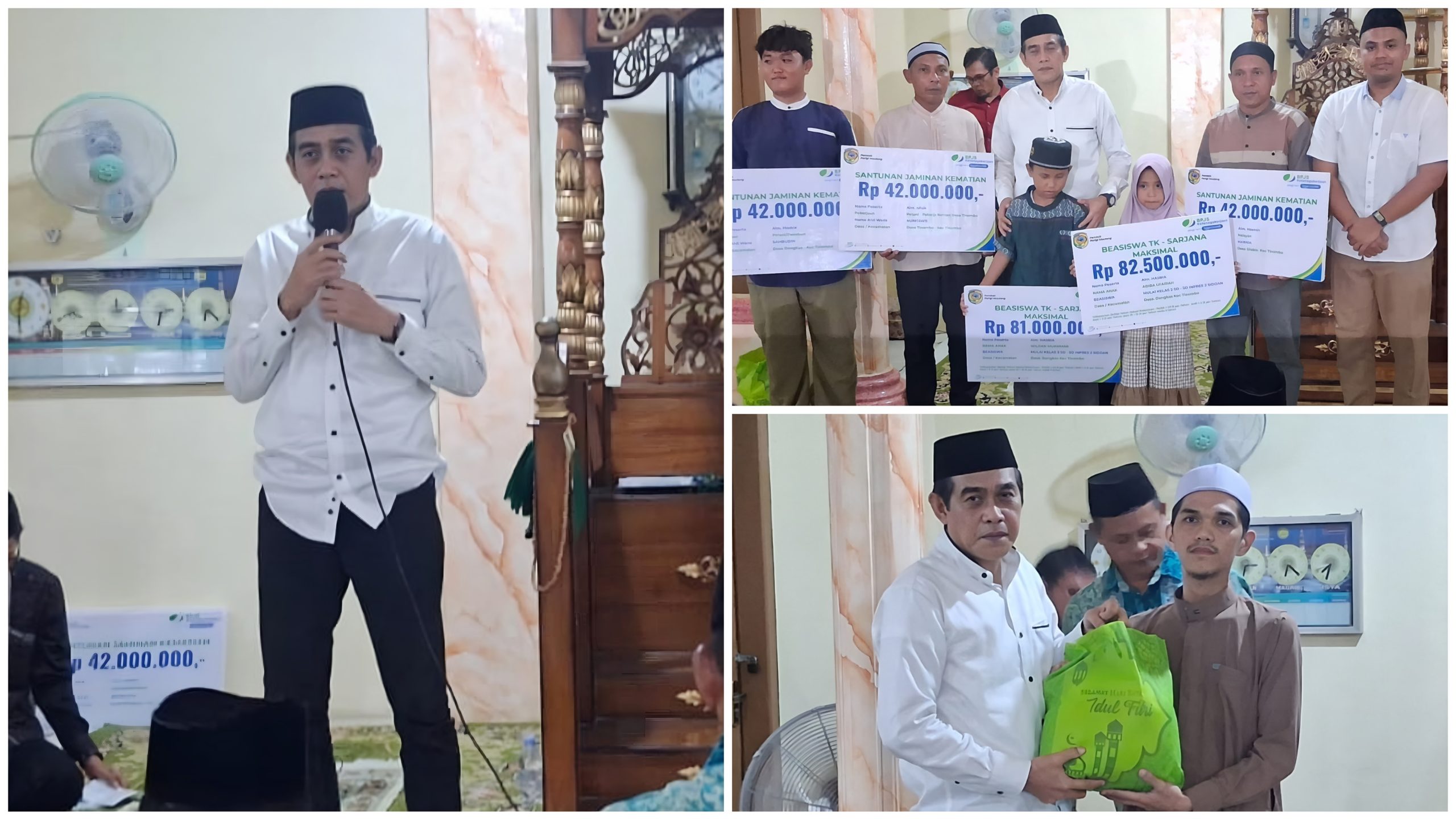 Kegiatan Safari Ramadan tersebut juga dirangkaikan dengan penyerahan bantuan sembako, bingkisan paket Ramadan kepada pegawai syar’i, serta penyerahan bantuan sosial dari BPJS Ketenagakerjaan kepada masyarakat di Kecamatan Tinombo Selatan.